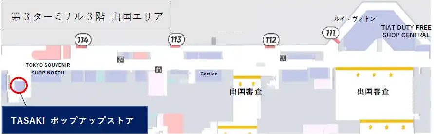 | (デインジャー)」をはじめとする「TASAKI COLLECTION LINE(TASAKI コレクション ライン)」などのTASAKIを代表するラインナップを展開いたします。第3ターミナルから海外へご出発の際は、ぜひお立ち寄りください。 | |||