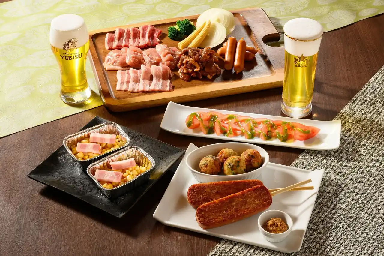 数種類のお肉と野菜が楽しめる、人気のバーベキュー食べ放題&飲み放題の120分プランです。 |