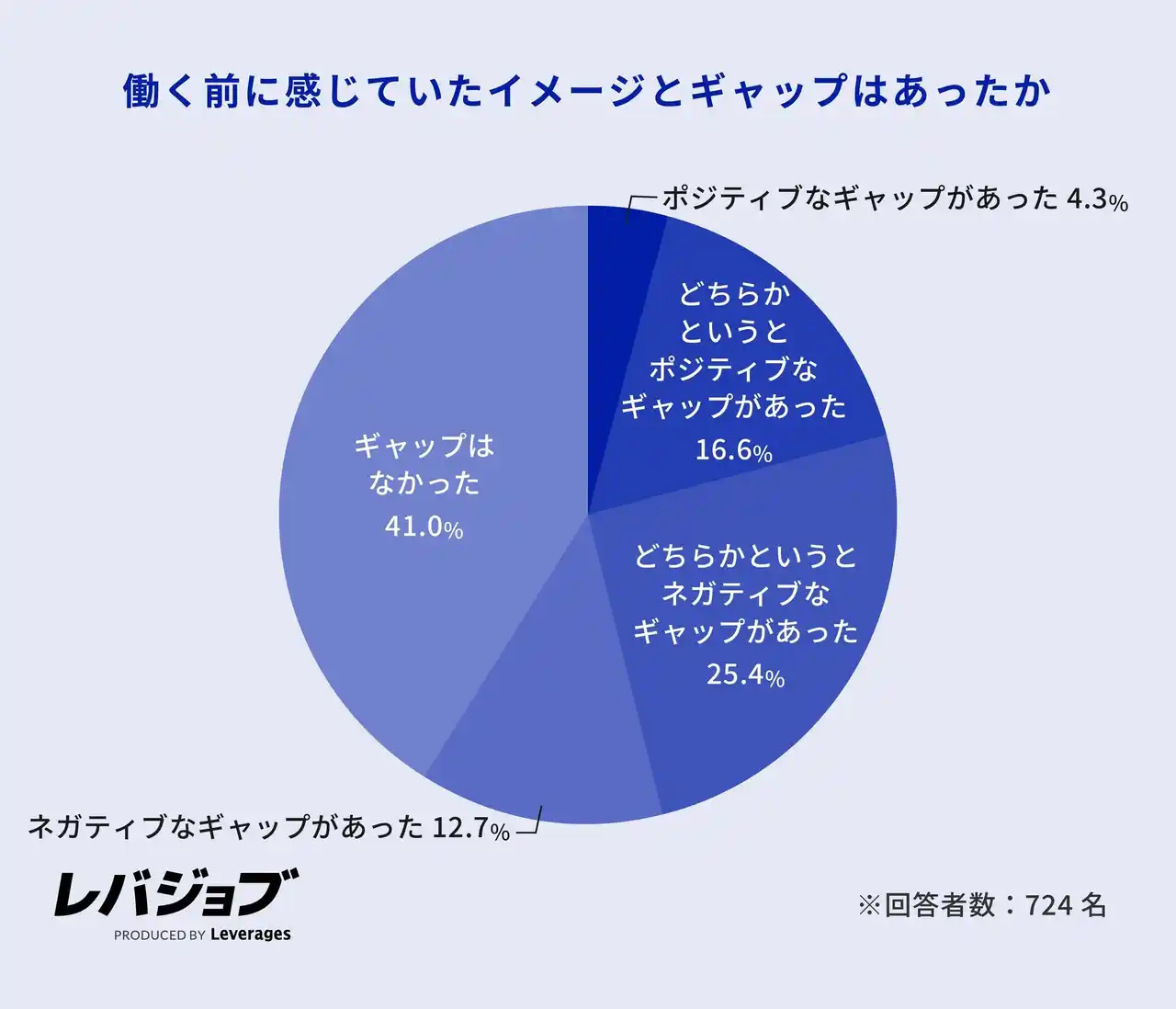 「働く前のイメージとギャップなし」と回答した方が4割超え、その他の見解は二分 |
