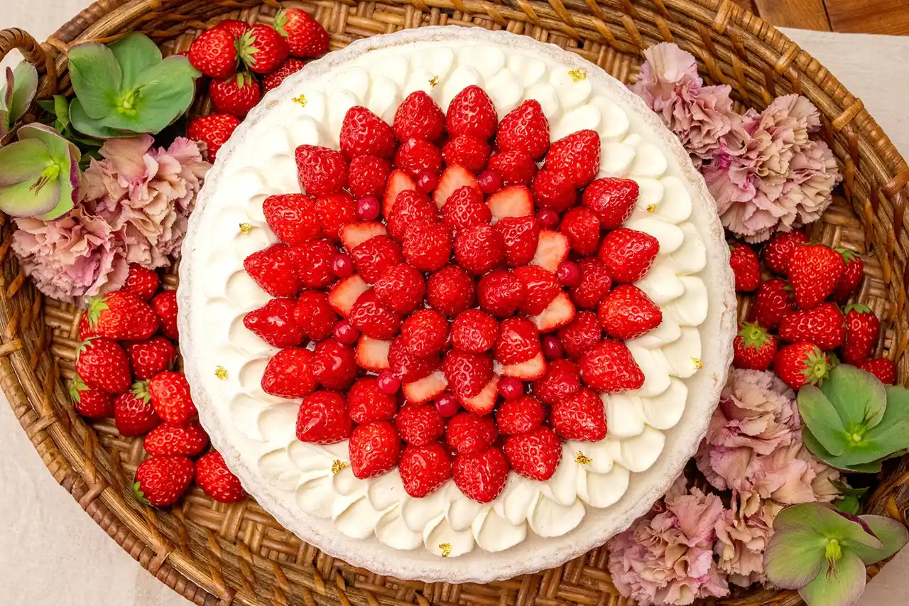 | なめらかなマスカルポーネクリームとベリージャムを重ね、イチゴとともに、花びらのようなクリームをあしらいました。赤いカーネーションの花言葉は「母への愛」。真っ赤に咲くその姿をイメージした、華やかなタルトです。大切なお母さんへ、感謝の想いをやさしく届けます。 | ||||||||||