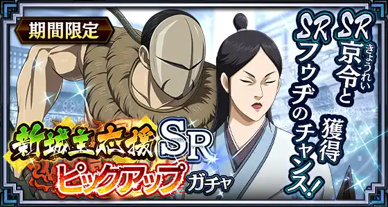 SR★4武将排出確率が通常時と比べて6倍にUPします! |