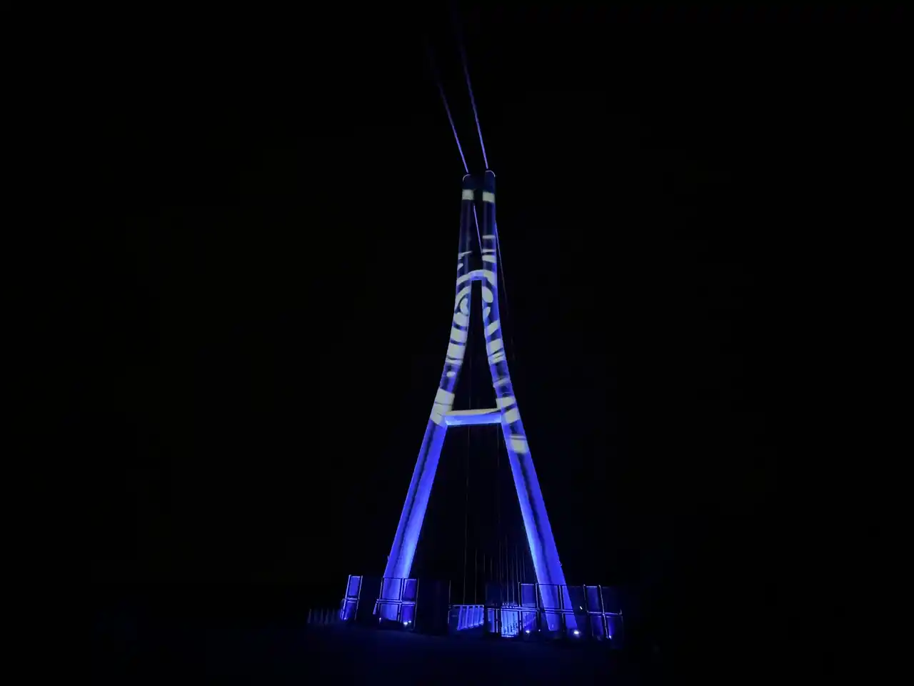 演出イメージ(つり橋の主塔/写真はテスト試写の様子。実際の演出と異なる場合がございます) |