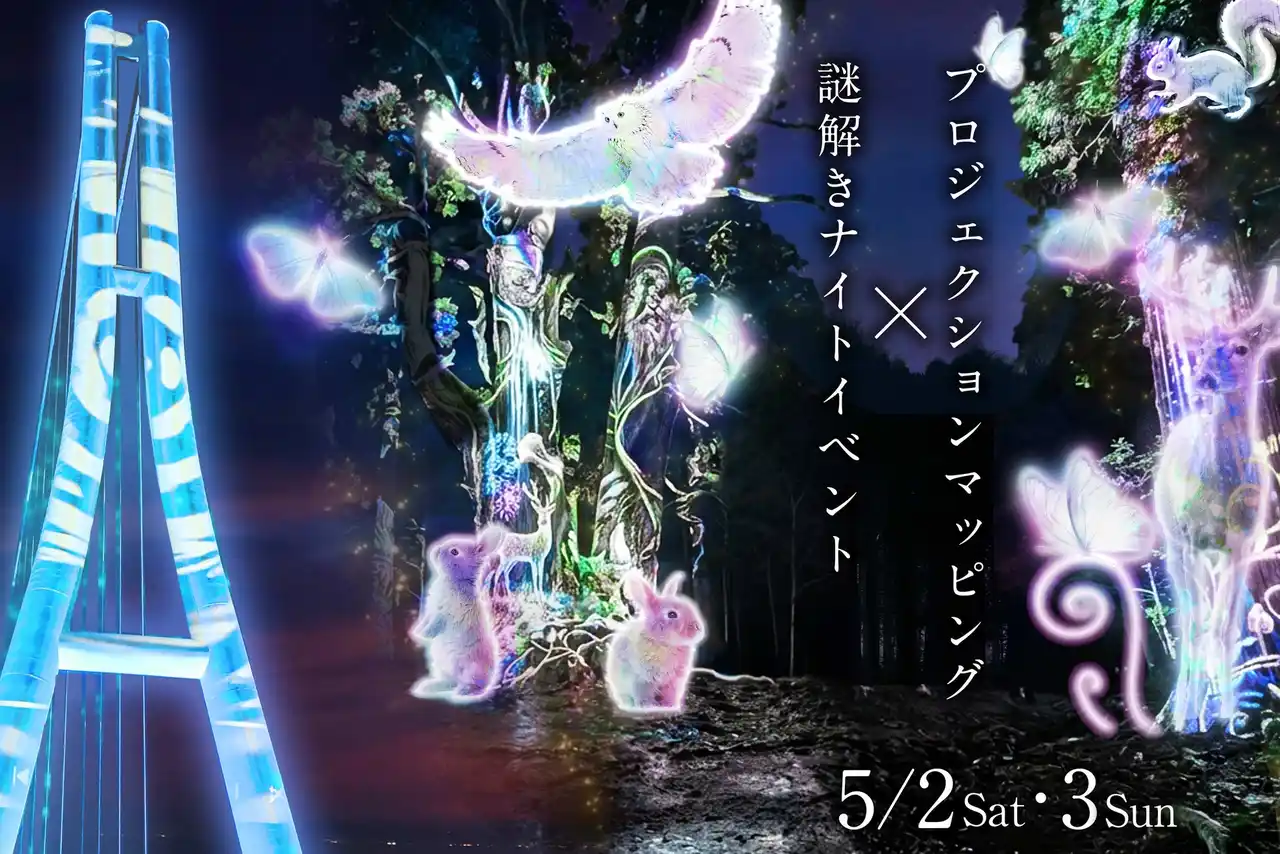こうした中、三島スカイウォークでは、花火やドローンショー、夜間のロングジップスライドなど、夜も楽しめる取り組みを展開してきました。今回は、2025年12月に開業10周年を迎えた三島スカイウォークが年間を通じて展開する記念事業の一環として、夜のプロジェクションマッピングに謎解きを組み合わせた本イベントを開催します。三島スカイウォークでの謎解きイベントは、今回で2回目の企画・開催です。 |