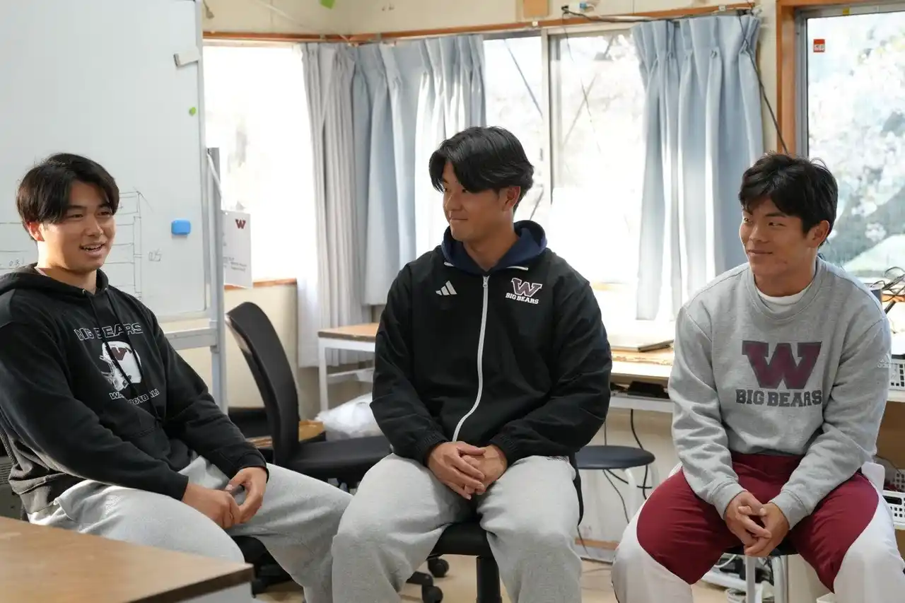 | 小島:僕自身、小学生の頃に早慶戦を見て憧れ、BIG BEARSに入部しました。だからこそ、今度は大学生としてこの場に立てることに、強い感慨があります。 | |||||||||