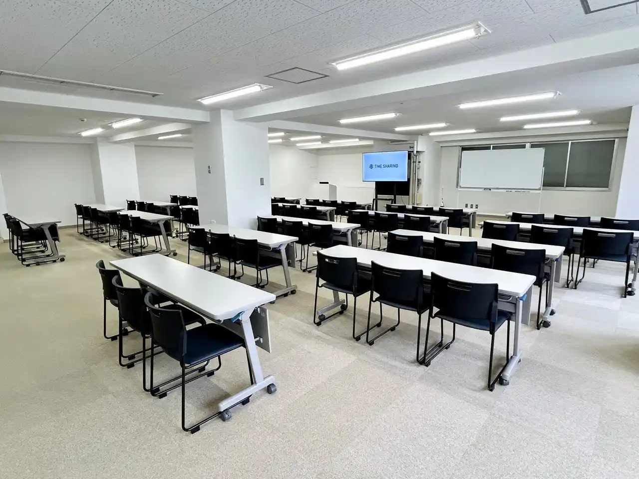 特徴2. スクール形式60名対応・131.92平方メートル の中規模会場 スクール形式で60名を収容可能な、131.92平方メートル の室内空間を備えています。企業研修、講演会、会社説明会、勉強会など、一定規模の参加者を想定した催事に対応します。 |