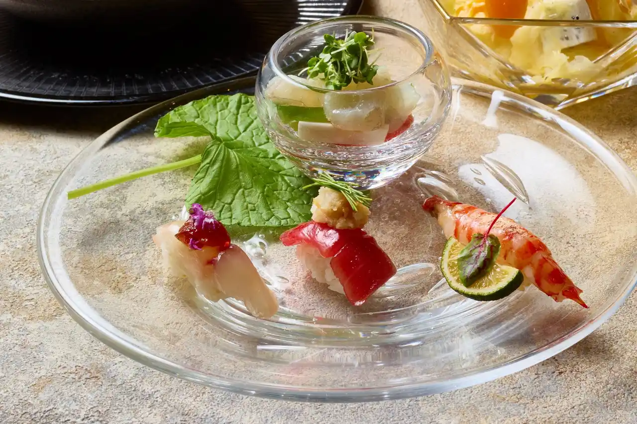 鮨向:三崎まぐろ と 旬の魚握り / 季節の変わり向付 |