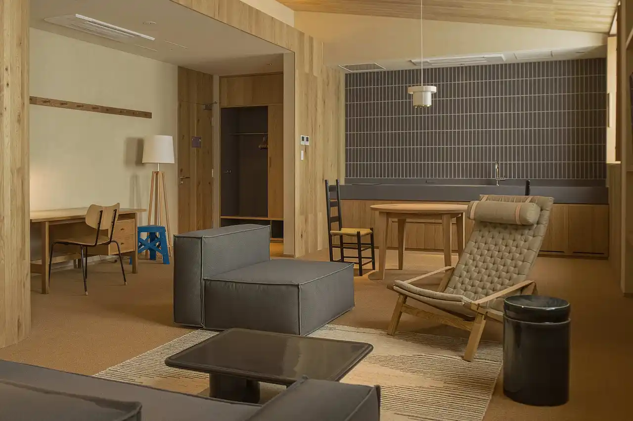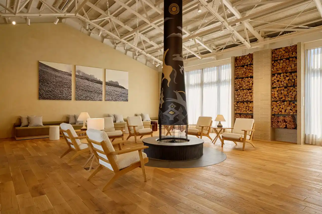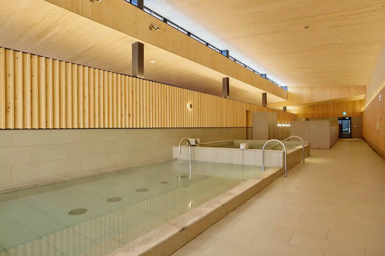 ザ・コンランショップがデザイン監修。旅の途中の立ち寄りにも、滞在の締めくくりにもふさわしい、心と身体をときほぐすための空間です。自然素材とモダンな感性を融合し、長野県産の素材を使用した薬草湯や屋内外のサウナ、ゆったりと過ごせる休息ラウンジを備えています。時間とともに移ろう光と陰影が、静かな深呼吸へと導きます。 |