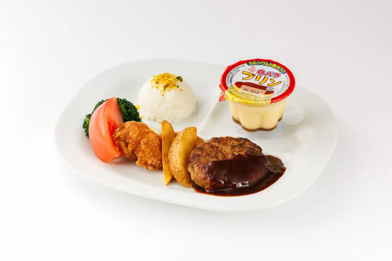 お子様に大人気なハンバーグやポテトのセットです。 |