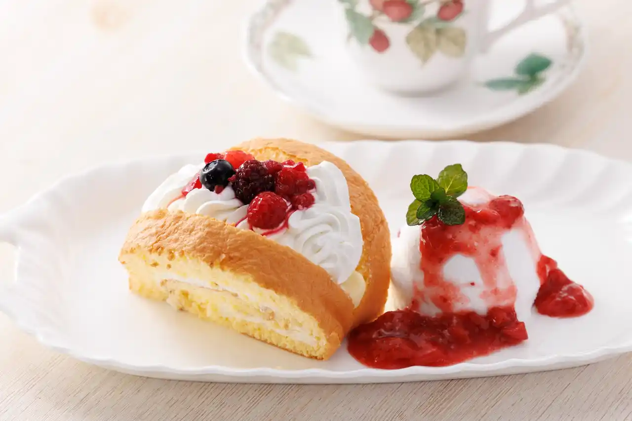 「食パラダイス鳥取県」特産品コンクール(令和7年度)で最優秀商を受賞した「白バラ牛乳生ロールケーキ」がみるくの里のレストラン限定のオリジナルスイーツプレートに大変身! |