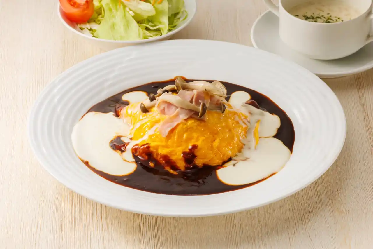 自家製ホワイトソースと濃厚デミグラスソースでお楽しみいただけます。 |