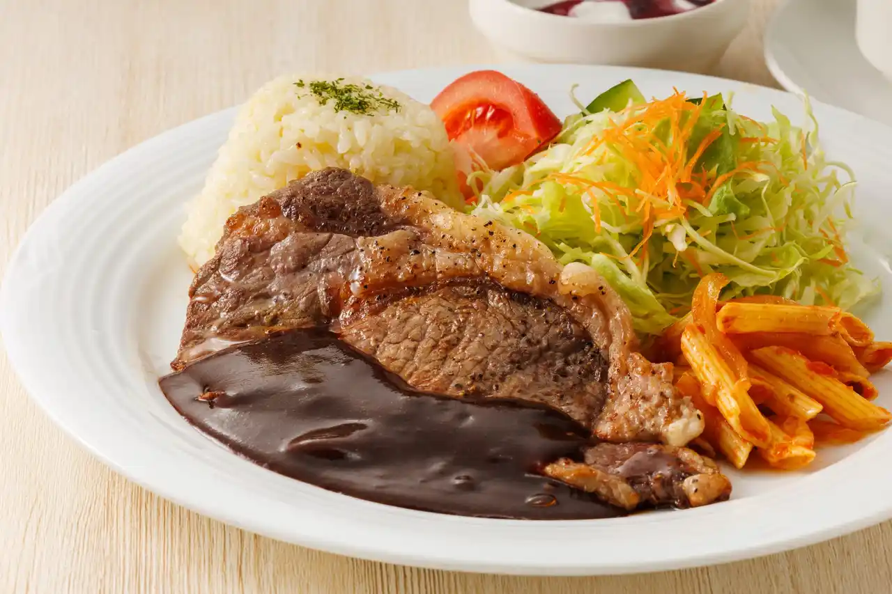 鳥取県産牛肉のステーキをデミグラスソースでお楽しみいただけます。 |