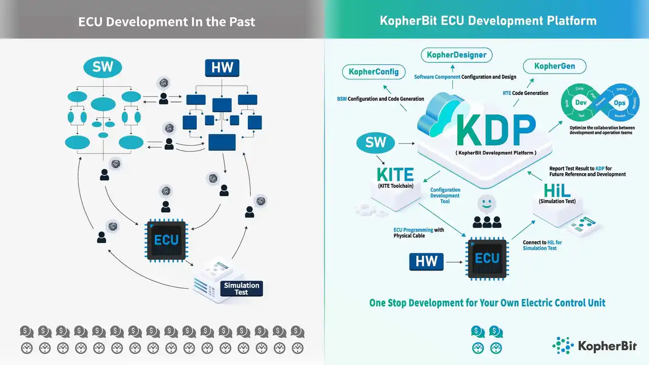 コファービット(KopherBit)はAUTOSAR準拠のBSWとAI駆動のトレーサブルな開発管理プラットフォームにより、顧客の開発期間を大幅に短縮します。 |