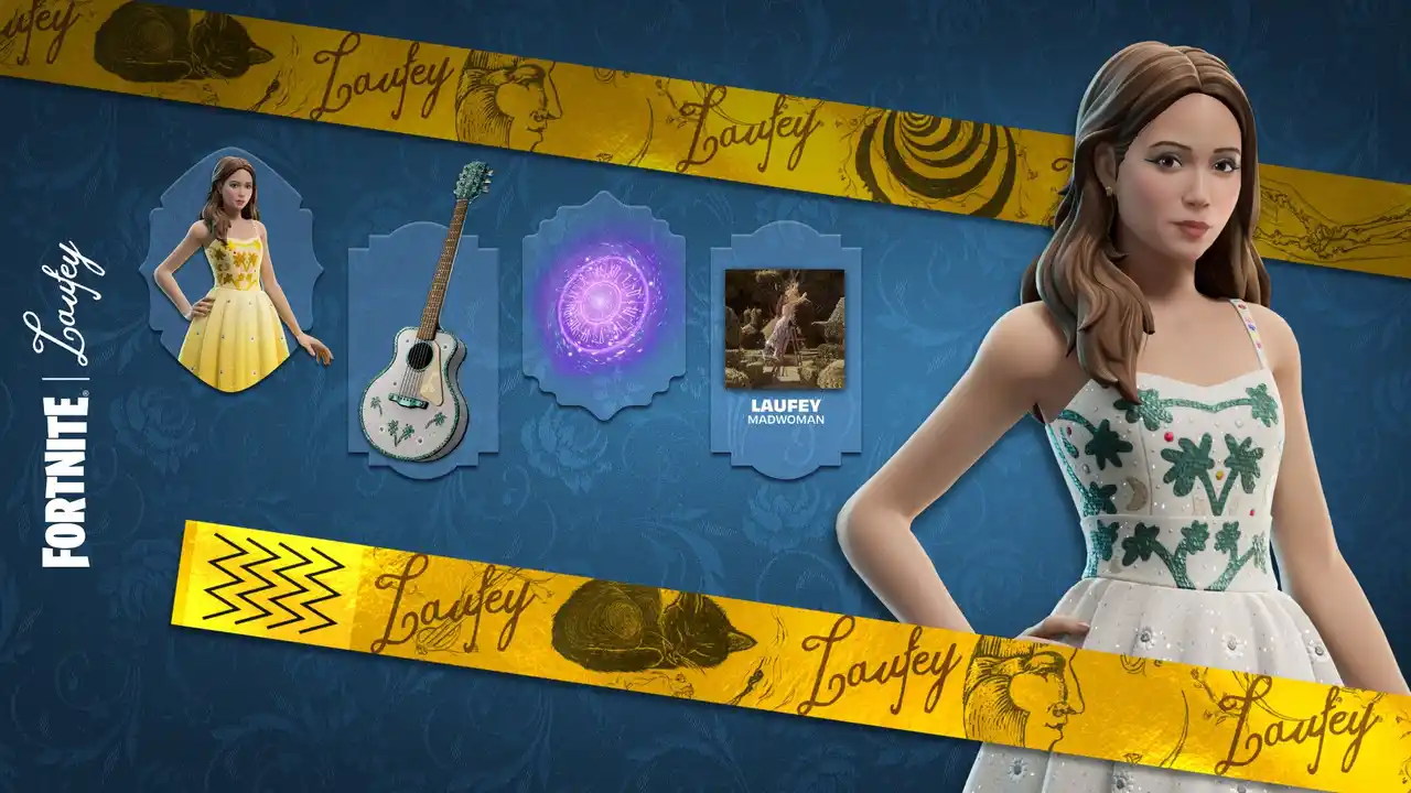 フォートナイトのクルーメンバー全員に提供される「シーズン14のエンバーライト ミュージックパス」では、白いドレス姿のコスチューム「Laufey」にアクセス可能です。さらに、パスを進めることで、Laufeyをモチーフした楽器やオーラ、ジャムトラック「Madwoman」などをアンロックできます。 |