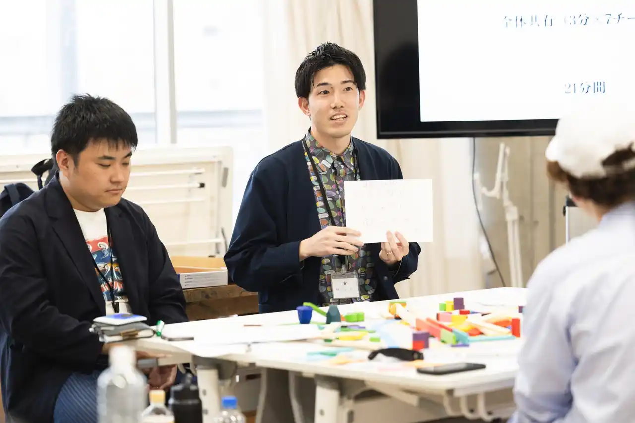 本プログラムの核心は「体感」にあります。アート創作や街づくりワークを通じて、参加者は楽しさや夢中になる感覚の中で、頭で理解する前に、からだで感じることができます。アート創作では、粘土で分身をつくる中で、言葉にしにくい自分の価値観や感じ方が形になります。街づくりワークでは、チームが機能しない状態と機能する状態を、知識としてだけでなく、からだで感じることができます。業務から離れた文脈でそれらを体験するからこそ、日頃チームの中で感じていたことを外から眺め直し、職場に持ち帰れる気づきになります。 |