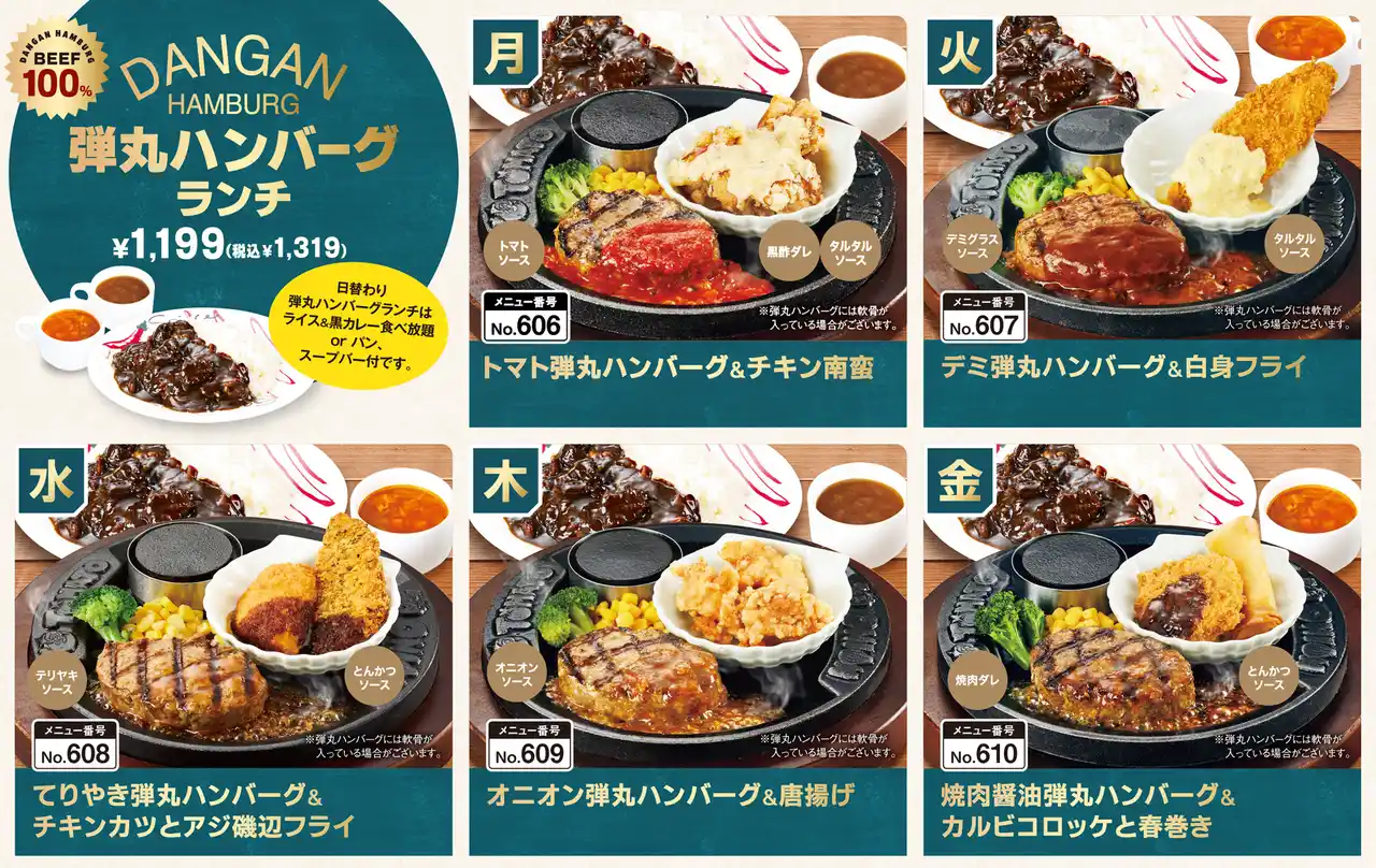 また、一番人気の「弾丸ハンバーグ」もランチ限定で、お手頃なセット価格にてご提供しております。 |