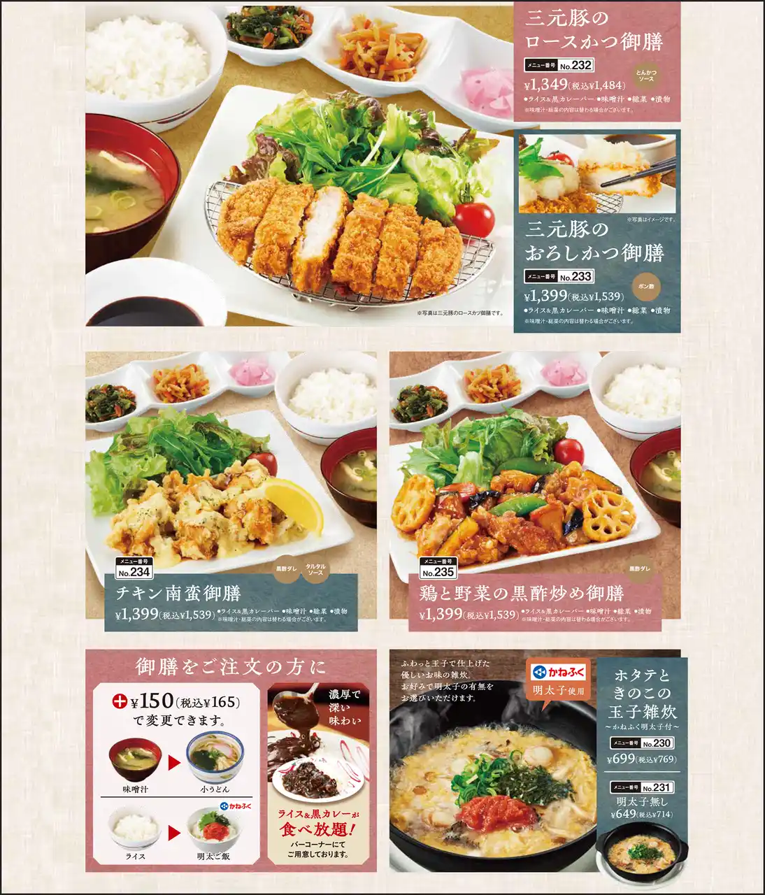 あらゆる世代のお客様に、幅広いメニューの中から好みに合わせてお選びいただける内容となりました。 |