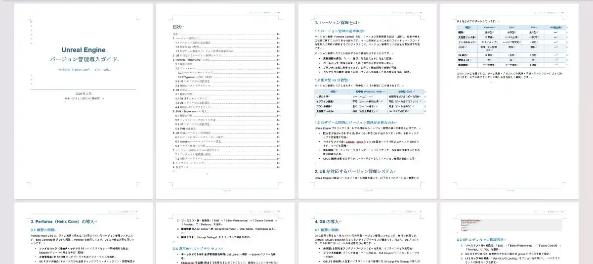 ヒストリアが作成した「バージョン管理導入ガイド」をご提供いたします。初めてUnreal Engineを使用する際につまずきやすいバージョン管理システム導入をサポートし、スムーズにプロジェクトを開始できます。 |