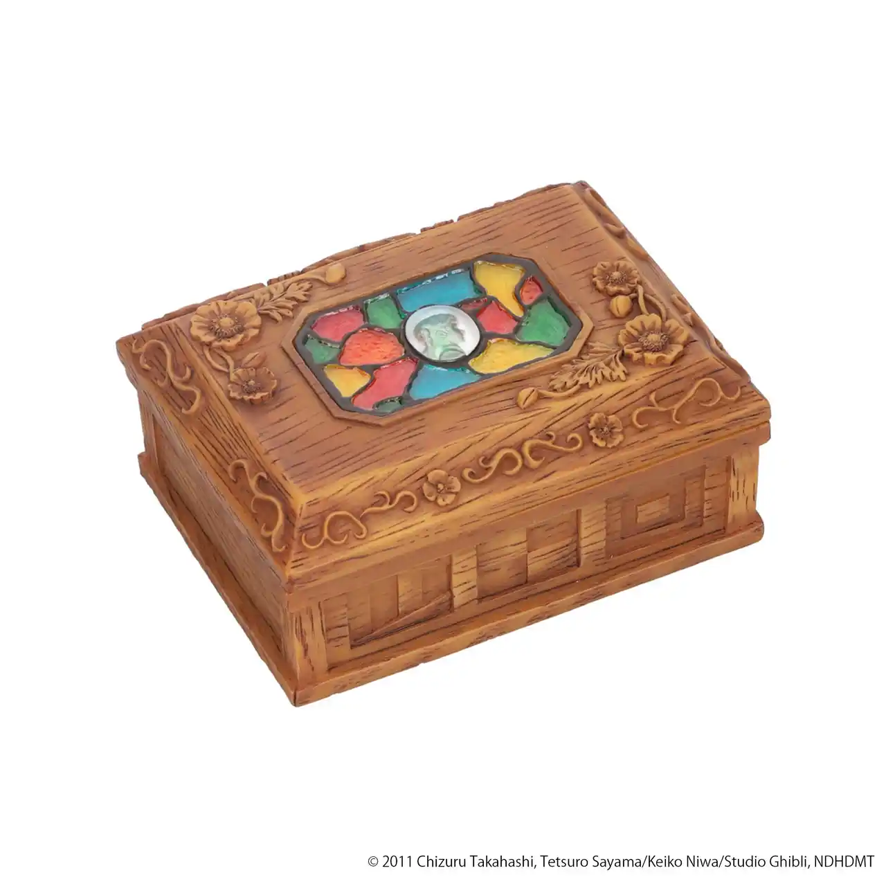 作中に登場する古い洋館「カルチェラタン」をイメージした、2011年発売の小物入れをリニューアルいたしました。箱の内部に刻まれた年輪と古びた質感が「カルチェラタン」を想起させるデザインで、木彫り風のお花や応答旗、ステンドグラス風の装飾など作品に関連したモチーフをあしらいました。クッションを入れてジュエリーボックスとして活用したり、時計やイヤホンなど小ぶりなものを収納したりと、自分だけの「宝箱」として使ってほしいアイテムです。 |