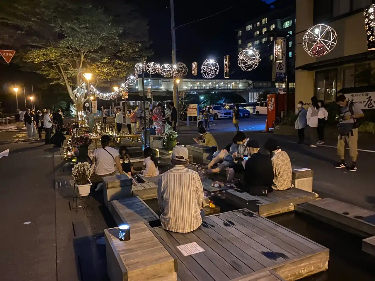 | 風情ある竹あかりが足元をやさしく照らし、温泉街ならではの情緒ある夜のひとときを過ごせます。夜の灯りの演出の中でも足湯を楽しむことができ、昼とはまた違った温泉街の表情を感じながら散策いただけます。 | ||||||||||||