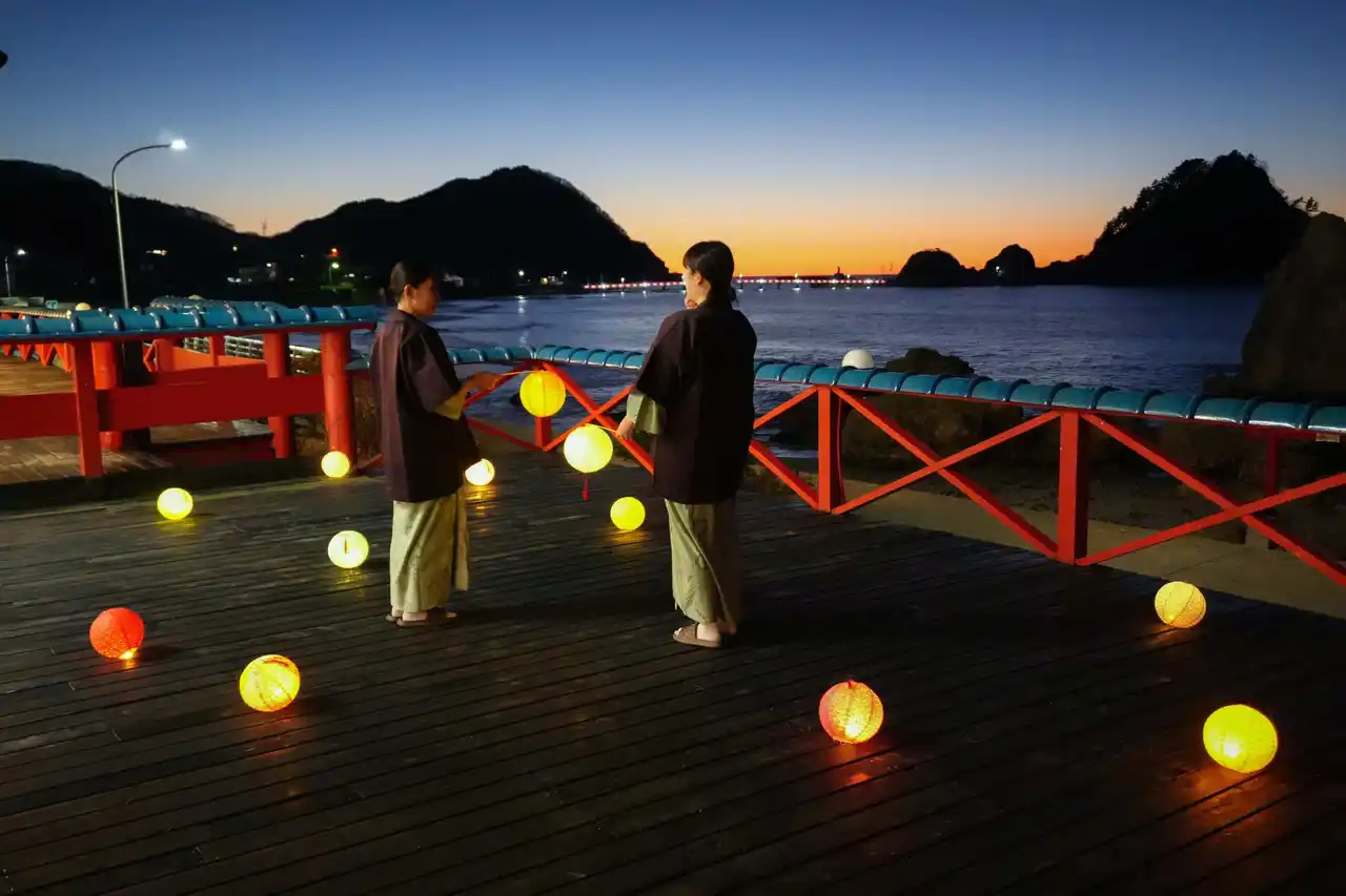| お越しの際は、温泉や旬の食をお楽しみいただくのももちろんですが、本企画を通じて、夜の海辺を歩く楽しみも感じていただきたいと考えています。由良温泉では、白山島や由良海岸周辺の景観を活かし、灯りとともにゆったりと散策できる時間を提供します。 | ||||||||||||