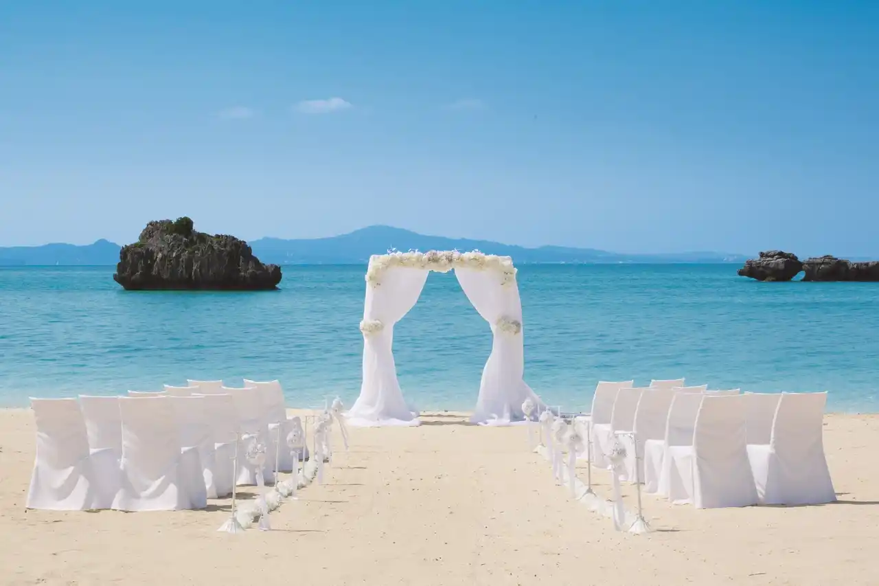 沖縄リゾートならではのビーチウエディング挙式も叶う |
