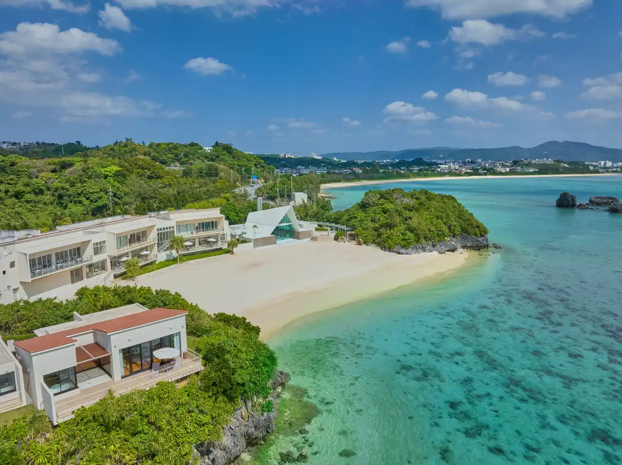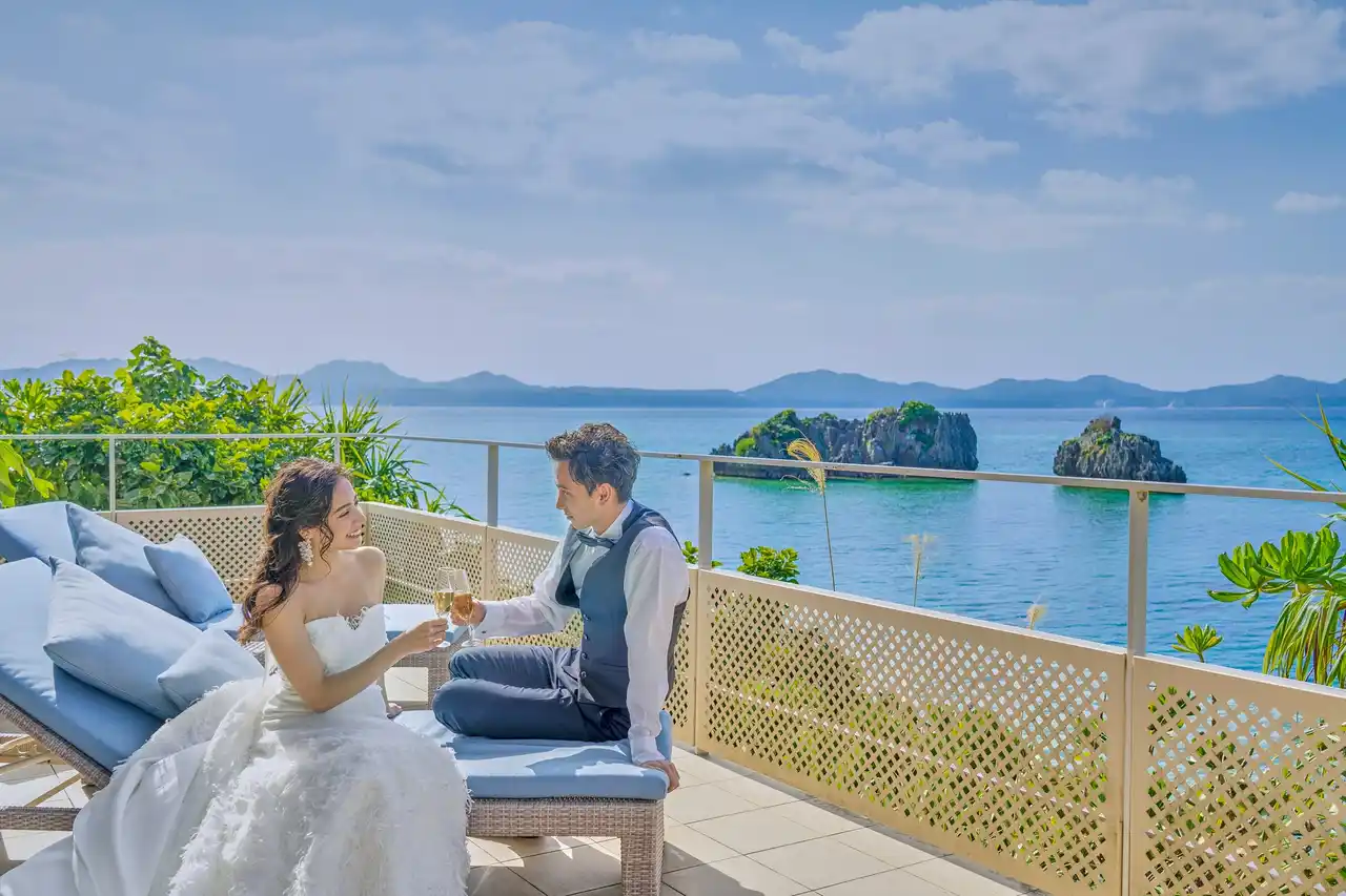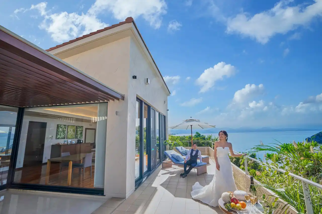 チャペル・バンケット・宿泊施設すべてがオーシャンフロントにそびえ立つこの空間で、挙式だけではない、ゆったりとした沖縄時間をプライベートヴィラで過ごす「ウエディングステイ」が体験できる施設です。 |