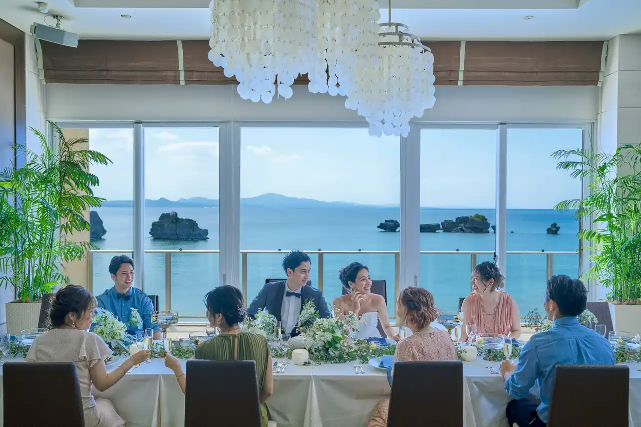 海を一望するオーシャンフロントバンケットは、落ち着いた雰囲気でパーティーができると高評価をいただきました。バンケットから臨む名護湾の眺望もゲストへのおもてなしになると、大変ご好評いただいております。 |