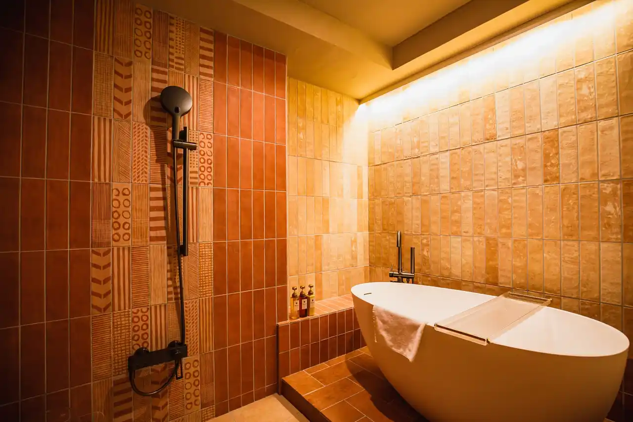 | 都会の喧騒から離れ、砂時計の砂が落ちるように静かに流れる時間を楽しむための場所として誕生しました。「モロッコの砂漠から着想を得た内装」と「映画」をテーマに、心のリラクゼーションを提供します。一歩足を踏み入れると、モダンな美しさと砂漠の静寂を融合させたインテリアが、ゲストを非日常の世界へと誘います。 | ||||||||||||||||||||||||
