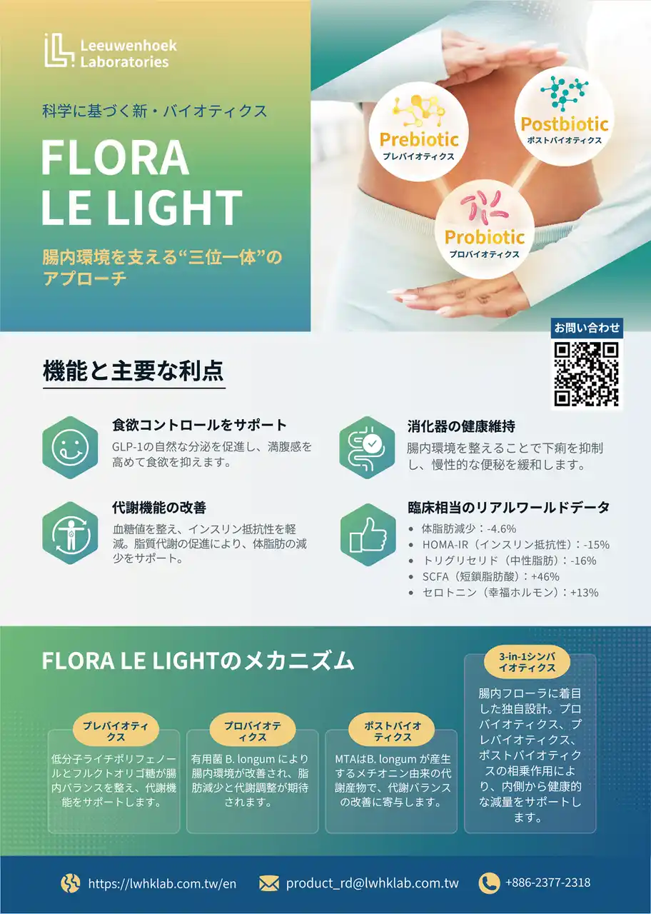 | 同社は「腸内細菌を通じた精密な健康管理は、ポストコロナ時代の予防医学において不可欠です。台湾の高度なバイオ技術を、日本の皆様の健康寿命延伸に役立てたい」と述べています。 | |||