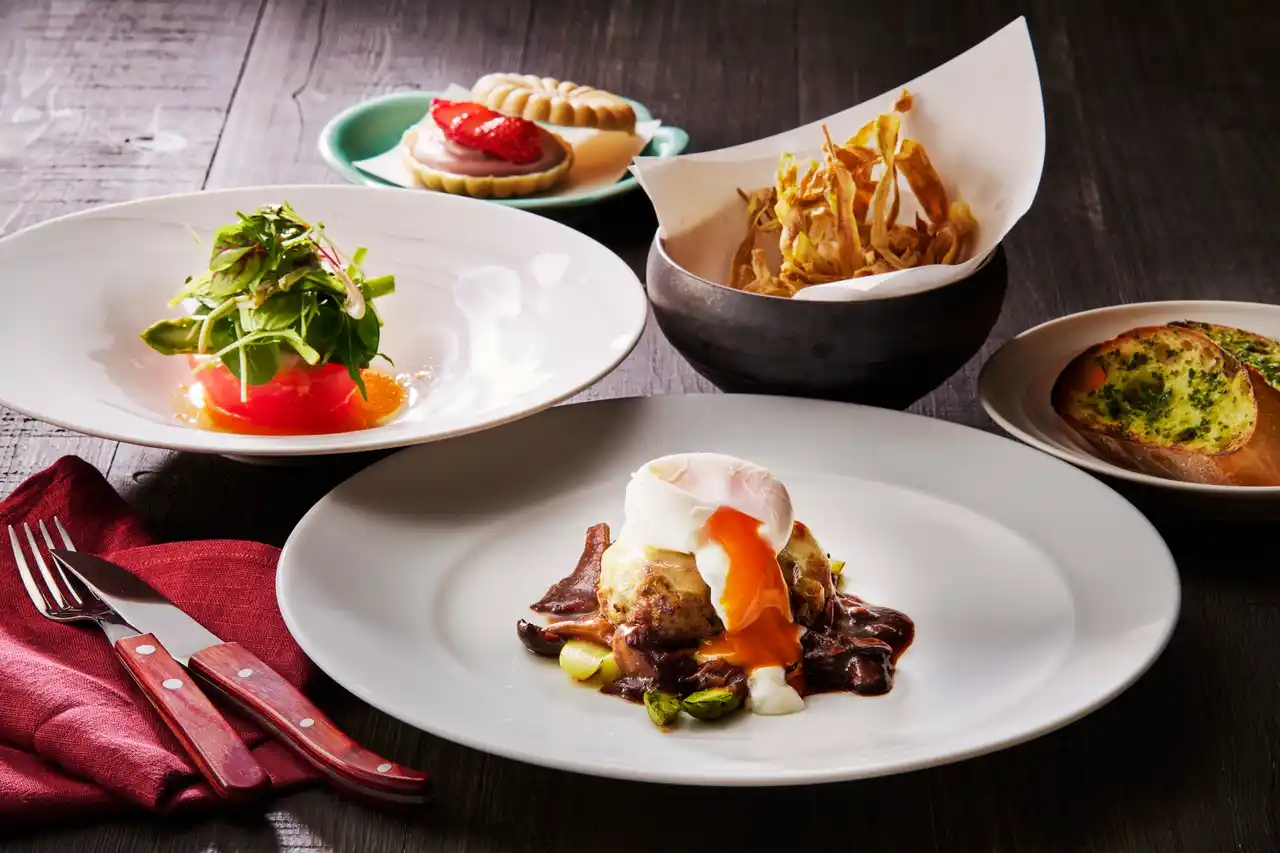 ナイフを入れると溢れ出す、旨みが濃縮された肉汁に、とろりと半熟のポーチドエッグが絡み、たっぷりのチーズとソースの香ばしい香りが食欲をかき立てます。五感で味わう鉄板焼きならではのコースには、ワンドリンクとさらにウェスティンルスツ温泉の入浴が付いて、ちょっと贅沢なご褒美ランチをお楽しみいただけます。 |