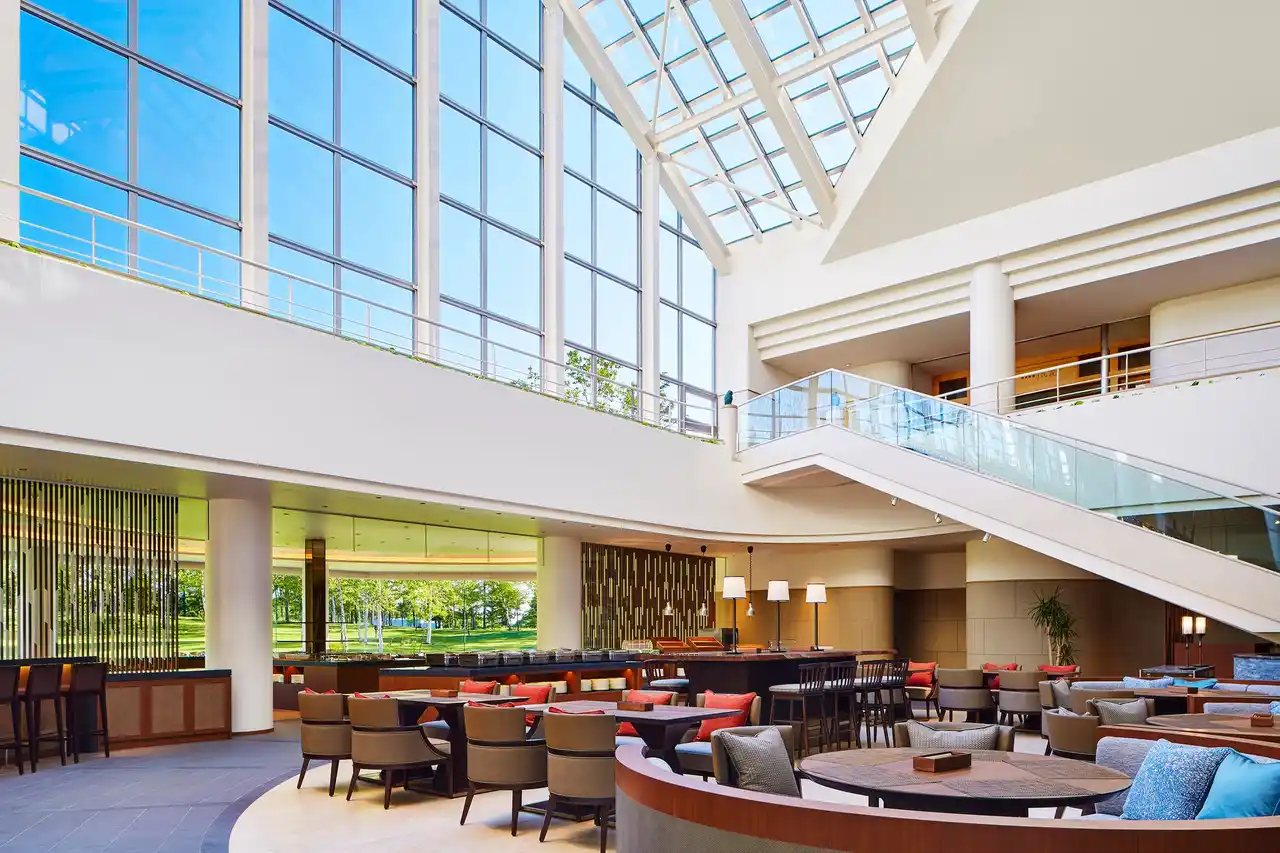 ■オールデイダイニング アトリウム ウェスティン ルスツリゾートのフロント前に位置する、自然光が明るい開放的なオールデイダイニング。朝食と夕食ではブッフェメニューのほかに、Eat Well Menuのアラカルトや北海道の食材を使ったスイーツも各種ご用意しております。 |