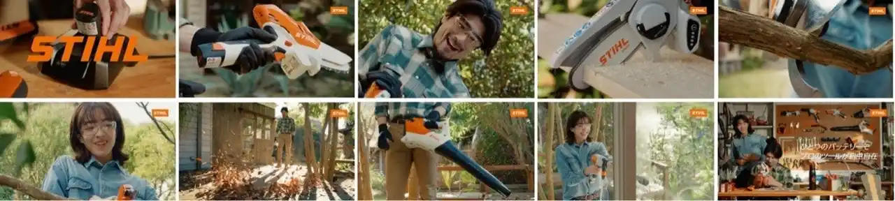 を皮切りに、今後順次放映地区を拡大する予定です。新広告では、広告で登場する、STIHLのバッテリー式・屋外用パワーツールシリーズ「ASシステム」の各製品を使用する際の“操作音/作業音”をサンプリングしてサウンドデザインし、STIHLの製品を使って行う庭いじりやDIYの楽しさ、そのパワフルなツールを使う際に感じる高揚感を、ダイナミックで躍動感のある映像と共に表現しています。また、さまざまなバッテリー製品を次々と登場させ、「ASシステム」が、共通のAS