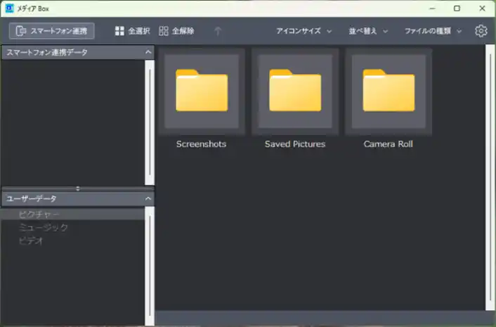 パソコンとスマホが同一のLAN/Wi-Fi環境に接続されていれば、スマホの画面に表示されるコードから、スマホ内の写真を”メディアBox”に転送できます。 |