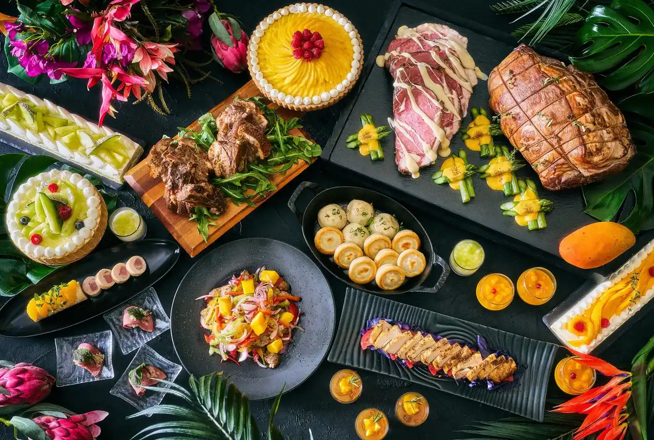 本フェアでは、シェフが目の前で仕上げるライブ感あふれるグリル料理を主役に、食欲をそそる多彩なミートメニューを取り揃えました。デザートエリアには、芳醇な香りのマンゴーとみずみずしいメロンをふんだんに使用した、見た目にも鮮やかなスイーツが並びます。 |