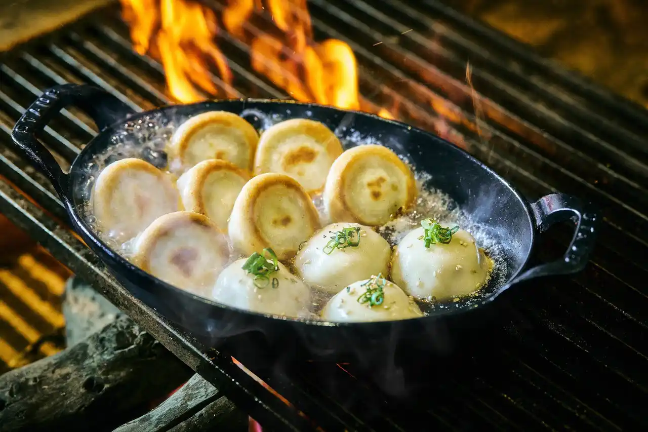 蒸したての小籠包に香ばしい焼き目を付け、カリッとした皮とあふれる肉汁が楽しめる一品 |
