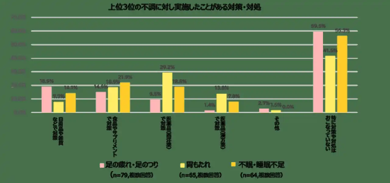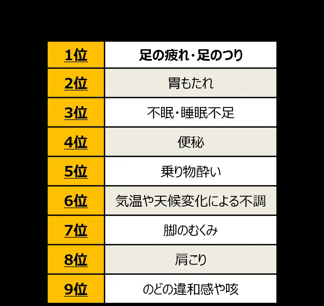 最も悩む人が多い不調は「歩きすぎによる足の疲れ・足のつり」/環境の変化による不調も |