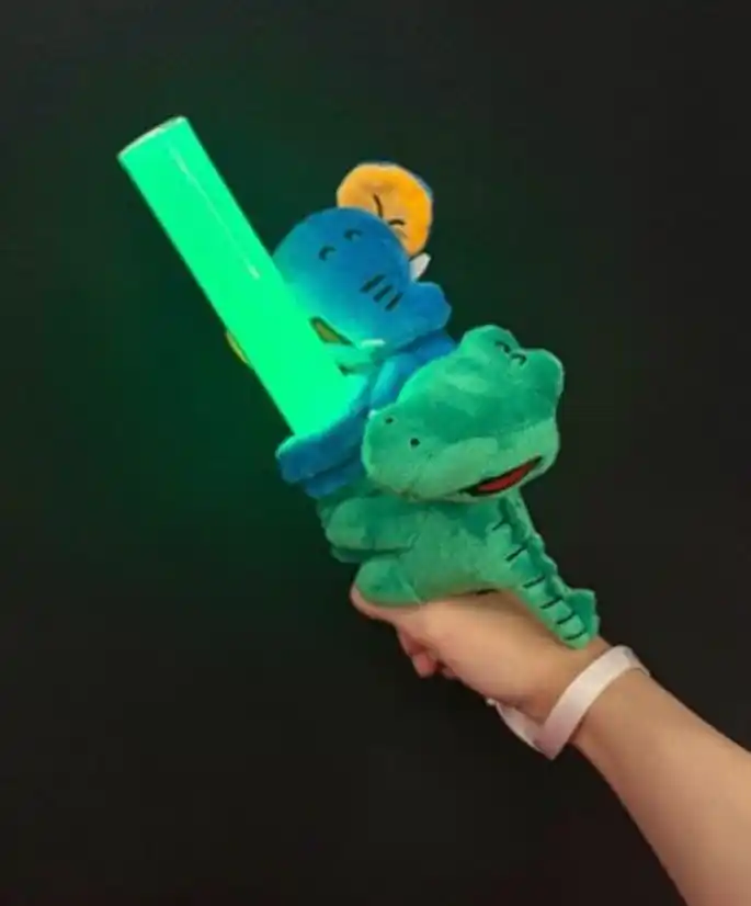 「たべっ子どうぶつ」の世界観をまとった、どうぶつさんのぬいぐるみ付きシュシュ。ヘアアクセサリーとしてはもちろん、ペンライトやバッグに付けて推し活グッズとしても活躍します。 |