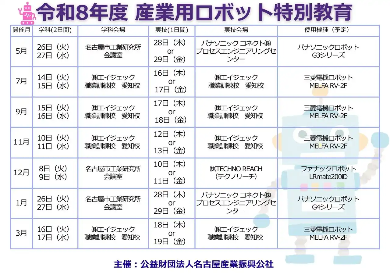 令和8年度 産業用ロボット特別教育(教示・検査等) |