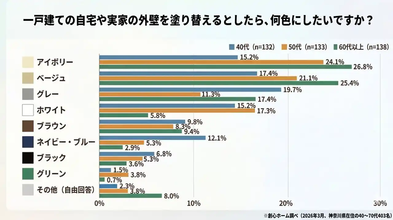 ■40代はグレー派、50代・60代はアイボリー派 外壁カラーに世代差 |