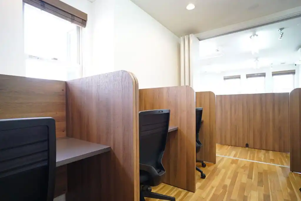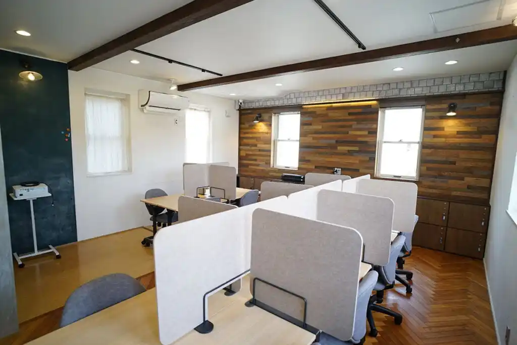| そこで、平日日中は職業訓練校のスペースとして、授業の無い夕方以降と土日は机の上にパーテーションを設置し勉強カフェとして利用することで、同一の空間を二つの目的に活用します。また、今後は職業訓練校と勉強カフェ、いずれのご利用者も互いに学べるデジタルスキルセミナーなどの講座も順次構想しています。 | |||||||||