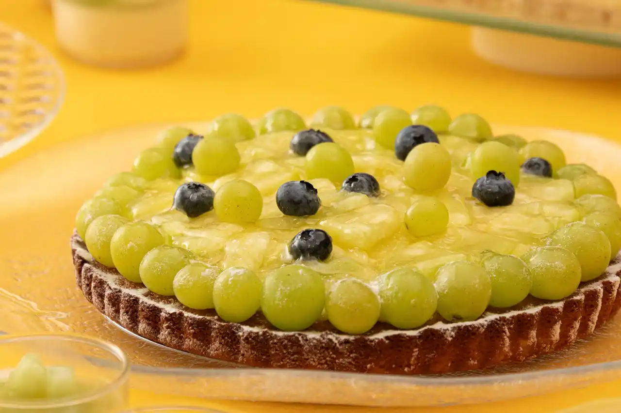 メロンがぎっしり敷き詰められた「メロンとぶどうのタルト」 |