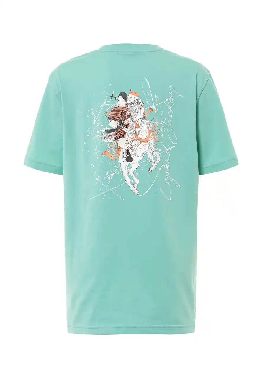 女武者・巴御前をモチーフに、ジョッキーとして再解釈したデザインです。強さと優雅さを併せ持つ |