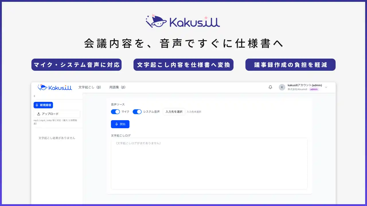 システム開発業界の構造的課題解決に取り組む株式会社Atsumell(本社:東京都中央区日本橋茅場町一丁目8番1号、代表取締役:山口公徳、以下「当社」)は、「暗黙知の抜け落ち」を解消し、AI駆動要件定義を可能にする、ガイド型AIエージェント「Kakusill(カクシル)」の提供を開始いたします。 |
