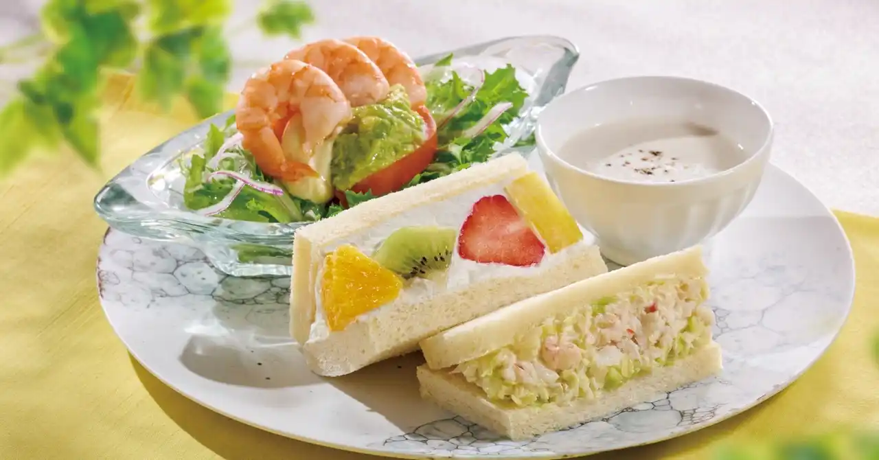 【果実屋珈琲】期間限定「海老アボカドの彩り野菜サラダ 選べるサンドプレート 冷たいスープ付き」を販売