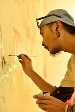 NPO法人アーティスト・コレクティヴ・フチュウ(ACF)の理事長も務めています。デザインやアートの分野で横断的に活動しており、府中では「JAZZ in FUCHU」のメインビジュアルも描いています。 |