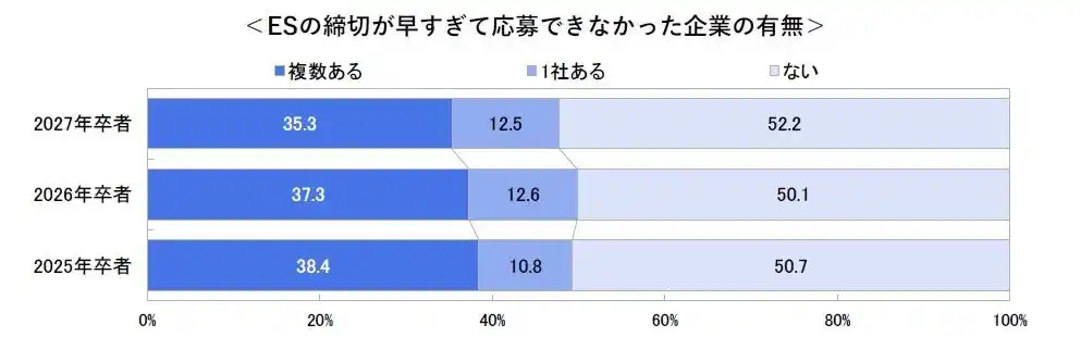 | 「ESの締切が早過ぎて応募できなかった企業がある」学生は半数近くに上る(47.8%) |