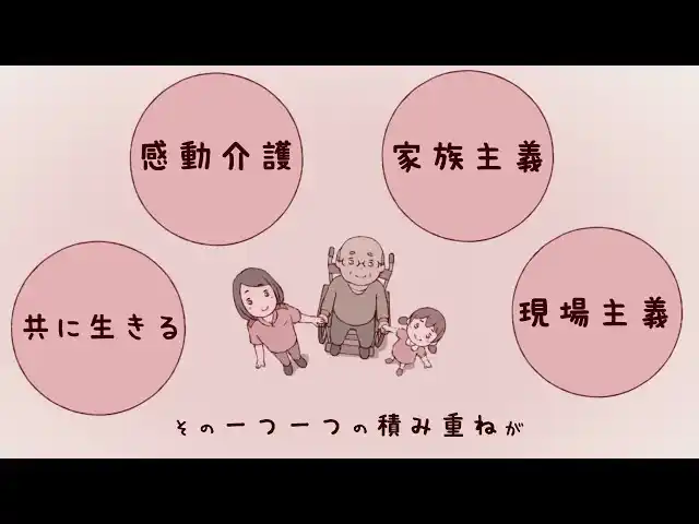 | ご利用者一人ひとりの「生きがい」まで追求し、「感動介護」を実現します。 | ||||||||||||||