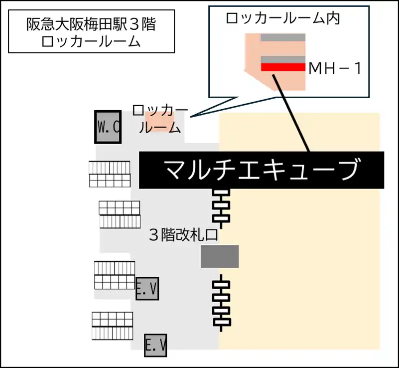 阪急電鉄 阪急大阪梅田駅 3階改札外 神戸線側 コインロッカールーム(MH-1) |