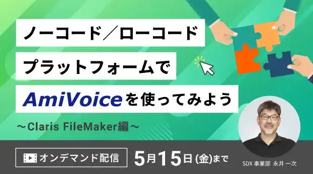 株式会社アドバンスト・メディア(本社:東京都豊島区、代表取締役会長兼社長:鈴木清幸 以下、アドバンスト・メディア)は、「ノーコード/ローコードプラットフォームでAmiVoice(R)を使ってみよう ~Claris FileMaker編~」のオンデマンド配信を開始いたします。