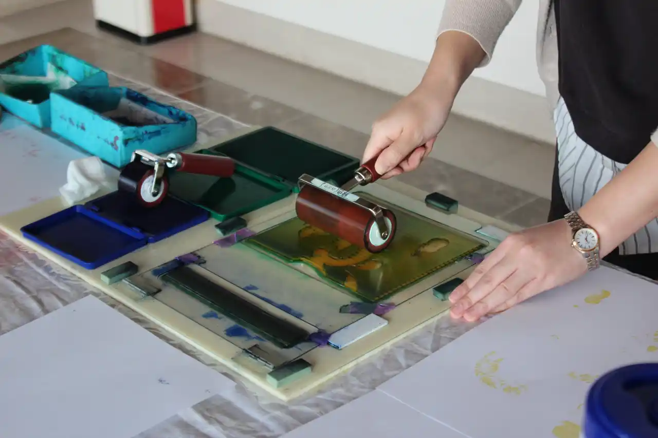 和泉市久保惣記念美術館協力のもと浮世絵版画摺り体験会を開催。浮世絵の摺師(すりし)になった気分で、2色の版画摺り体験をお楽しみいただけます。 |